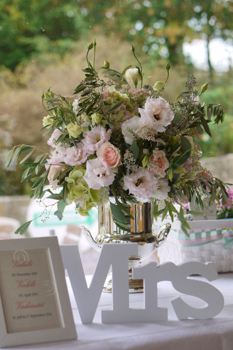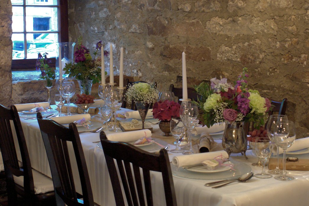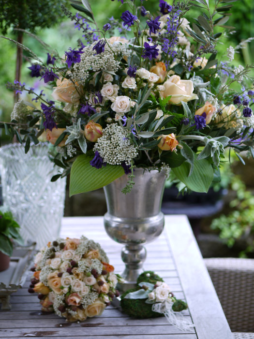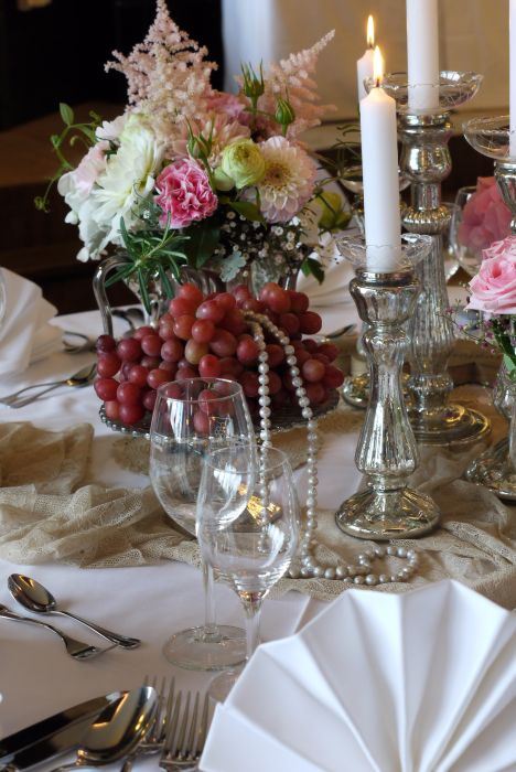 So beginnt die Geschichte zweier Liebenden. Der erste Blick, das erste Lächeln, der erste Kuss, das Hochzeitsfest... Blumen, Früchte und die Natur gehören für mich zum täglichen Leben, aber besonders für einen Tag, der der Schönste in unserem Leben sein soll. Sie sind Nahrung für die Seele und bleiben uns immer in Erinnerung. Inspiriert von Schönheit und Natur kreire ich zeitlose, natürliche, schlichte und üppige Dekorationen für Sie. Mit viel Feingefühl wird der Brautstrauß auf Sie und Ihr Traumkleid abgestimmt. Meine Vorliebe gilt dem Vintage - Style. Alte Schätze mit Geschichte werden mit dem Reichtum der Natur zu kleinen oder opulenten Stillleben kreiert. Sie sprechen unsere Seele an. Vertrauen Sie mir Ihre Träume und Ihre Geschichte an. Ich berate und begleite Sie gerne, damit dieser Tag der Schönste in Ihrem Leben wird. Ausleih-ServiceOb einzelne Elemente, wie besondere Pokale, antike Sektkühler, Silberleuchter oder eine komplette Vintage - Dekoration... es steht Ihnen ein großes Sortiment zum Ausleihen zur Verfügung. Hier eine Zusammenstellung einiger Lokationen mit Floristik und Dokorationen, die ich für Hochzeiten und Familienfeste ausgestalten durfte: